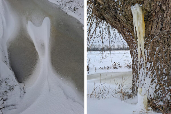 Sneeuwtocht langs de midden Waal
