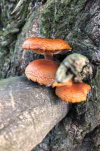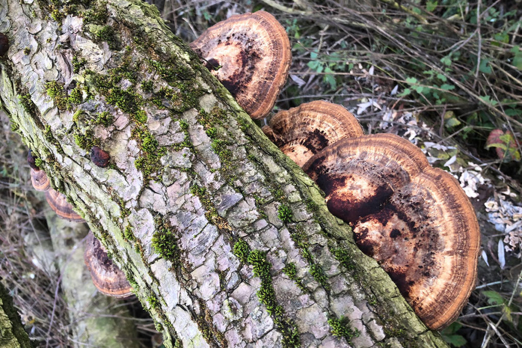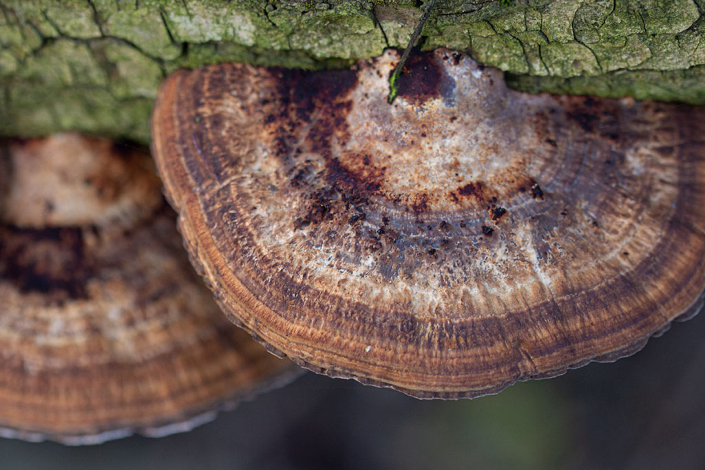 Op een omgevallen wilg zaten verschillende zwammen. Het ging hier om de roodporiehoutzwam (Daedaleopsis confragosa), een tamelijk algemene soort. Hoe die aan zijn naam komt? Een kleine test aan de onderkant kan de identiteit onthullen. Als je met je vinger de poriĆ«n een beetje indrukt, vormt zich daar een rode kleur. In het Engels heet deze zwam dan ook ’the Blushing Bracket’.