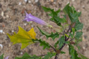 Een plant die je regelmatig op de stranden van de grote rivieren kunt tegenkomen is Doornappel. Als je de bijnamen hoort – Dolappel of Duivelsbazuin – dan heb je al in de gaten dat er hier iets aan de hand is. En inderdaad: het is een zeer giftige plant uit de nachtschade familie, die hallucinaties teweeg kan brengen. Het aanraken van een doornappel is overigens geen probleem. Zowel de plant als de vrucht kun je gerust vastpakken, het gevaar zit hem erin als je de zaden of andere delen gaat inslikken. Een plant waar heel veel over te vertellen valt!