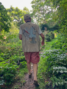 We strijken neer in de groene, bloeiende, fluitende en zoemende tuin van Marc Westermann in Neerijnen. Marc werd in 1945 op Sumatra geboren en is een begenadigd verteller als het gaat over zijn passies, zoals cinema en – in dit geval – vogels. Onder de overkapping van zijn 300 jaar oude Betuwse boerderij steekt hij van wal: “Ik kom op ruim zestig vogelsoorten die ik in mijn tuin heb gezien of gehoord, waarbij ook een nestelend paar ooievaars. En daar komt nog eens bij het gebrom en gezoem van hommels en andere insecten die hun bijdragen leveren aan de klankenrijkdom in mijn akoestische tuin!”