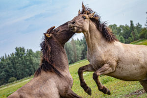 Tja dat is dan weer zo’n geluksmomentje: wandelend in het Munnikenland kwam ik een kudde koniks tegen. Wilde paarden die hun naam eer aan deden, want oei wat ging het er hard van langs. Ik kon het van heel dichtbij gadeslaan, want gelukkig zat er een 3 meter brede sloot tussen ons. genieten!