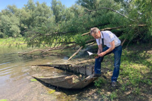 Wandelend door de Eijsder Beemden kom je een ijzeren paal tegen, getooid met een bordje…