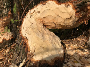 Het was zo droog dat ik de hele tocht met een paar stevige schoenen kon maken. Ik kon op plekken komen die ik anders nog niet met lieslaarzen aan had kunnen verkennen. De wilgenbossen, die je als wandelaar ook via de vele struinpaden kunt beleven, groeien rond plassen en een wirwar van afgegraven laagten. Het waterpeil was zo laag dat de ingangen van beverholen droog lagen. Overal langs de Waal sporen van hun aanwezigheid en de afdrukken van hun beiteltanden in de stammen van wilgen en populieren. Met hun grote lichamen maken ze paden door de laagten met riet en hoog opgroeiende brandnetel. Dank daarvoor.