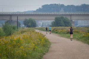 De Nijmegenaren maken grif gebruik van de recreatieve mogelijkheden. Door even één van de bruggen over te steken kan je er fietsen, wandelen, hardlopen of zwemmen.