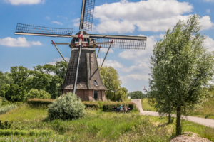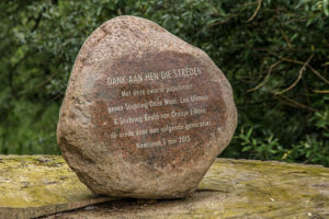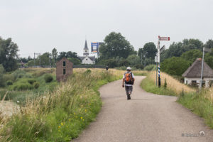 Bij Opijnen lopen we een stukje over de Waaldijk. Van hieruit heb je zicht op het monument ‘Man-O-War’ voor de in WOII neergestorte Amerikaans B17 bommenwerper. Van de tien bemanningsleden hebben acht de crash niet overleefd, zij liggen begraven op het Kerkhof in Opijnen. Het monument werd in 2006 onthuld door John Bruce, de co-piloot die het wél overleefde. De tien straten van de nieuwbouwwijk hebben de namen van de bemanning gekregen. Cafetaria Big Bread is lekker voor ijsje of snack onderweg (ook op de terugweg kom je hier langs). Verderop langs de dijk zien we een kunstwerk van Joyce Bloem (1951-2017). Het is een soort tijdcapsule, in elk gouden doosje zitten verhalen van schoolkinderen uit de 10 dorpen van de voormalige gemeente Neerijnen.