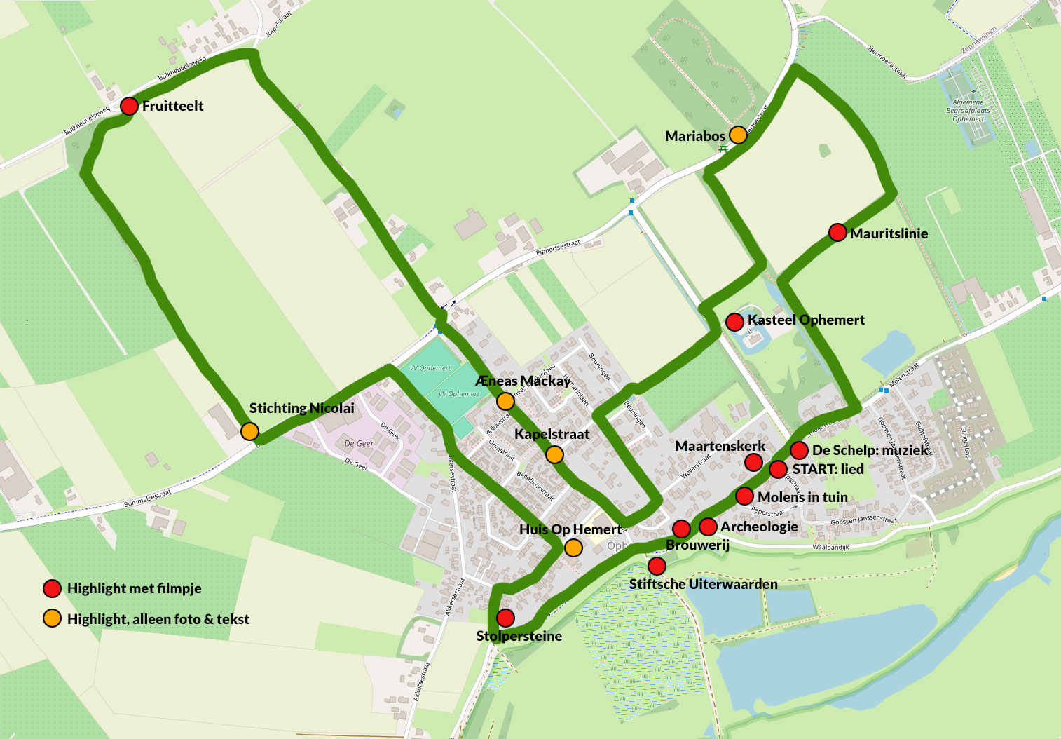 Startpunt: Splitsing Dorpsstraat en Molenstraat in Ophemert.