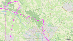 Vlak voor de ingang van het openluchttheater gaan we vanaf de Bosweg rechtsaf een zandweg in richting Gendringen. Het pad buigt na ongeveer 200 meter haaks naar rechts. In deze bocht ziet u recht voor u de unieke steilrand. Hier was eens de bedding van de rivier. Linksaf het grindpad op en we komen over een hoge boogbrug, dan rechtdoor langs manege Diekshof naar de Ulftseweg. Voor het oversteken naar links gaan en vervolgens de Ulftseweg oversteken. We rijden naar Links richting Gendringen. Thijsse kon in Gendringen niets over de dichter/wetenschapper Staring vinden. Dat verbaasde hem. Nu zien we wel een Staringstraat.