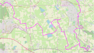 2. We gaan bij zandwinning Netterden rechts: Azewijnsestraat. Aangekomen bij de Berghseweg, deze N816 oversteken en linksaf. Dan een lang stuk rechtdoor. U volgt de Eerlandse Straat, gaat rechtdoor bij de rotonde Laakweg, en volgt de Meilandse Dijk en dan eerste weg rechts: Op den Dam.