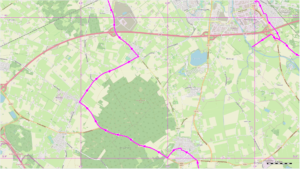 De Schapenbergweg gaat over in de Zuidlaan. Als we bij de Langejuffer, de eerste geasfalteerde dwarsweg, zijn: links de Langejuffer op.