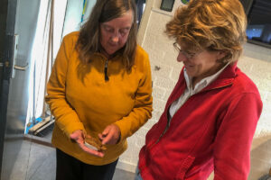 Ken je bijvoorbeeld het verhaal van de oudste bekende inwoner van Maurik? Het was een Romeinse soldaat uit Frankrijk, die hier zijn naam had ingekrast in zijn eetgerei. Binnenkort meer daarover. Ook leerden we van een boer uit Rijswijk die een zak met scherven van ongeveer 15 wrijfschalen kwam aanleveren, hij had ze gevonden op zijn land. Wrijfschalen werden gebruikt om kruiden fijn te wrijven en een dergelijke hoeveelheid wijst erop dat deze uit een grotere keuken van een legerplaats afkomstig waren. Hoogstwaarschijnlijk uit Castellum Mannaricum.