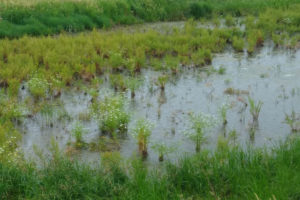 Zomerfijnstraal, Crepis Capilaris, Aardaker, Watereppe. Het is leuk om te zien wat in een gebied groeit dat een paar jaar geleden uit de landbouw is gehaald. De uiterwaard verdwijnt soms onder Waalwater, zoals dit vroege voorjaar, toen we uitsluitend nog over de zomerdijk konden lopen. In de hete weken eind juni hebben de gastdame en -heer van vandaag, Caroline van der Mark en Willem Beekman, meer dan 130 soorten geteld!