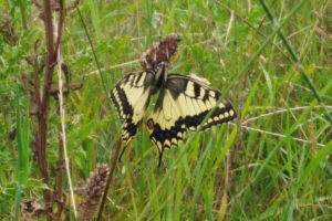 De wind trekt aan en we zien donkere wolken aankomen. Het begint te spetteren en het hoogtepunt van de wandeling dient zich aan. Een Koninginnepage steelt de show! Ze blijft rustig zitten, heeft geen zin om te fladderen in de regen. Velen van ons zien dit prachtige dier voor het allereerst en we nemen de tijd om haar van alle kanten te aanschouwen. Willem probeert de aandacht nog te trekken met een plant. Die gedrevenheid en liefde voor planten heeft ook indruk gemaakt vandaag!