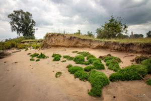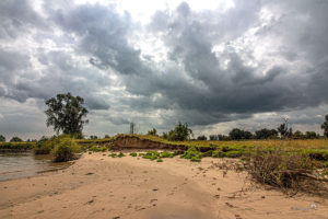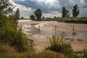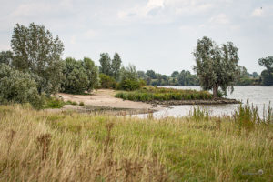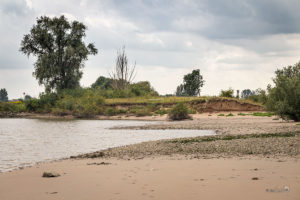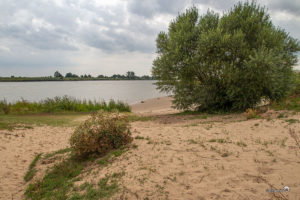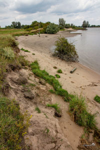 De uitgezette wandelroute zou 2 kilometer bedragen. maar achteraf staat ruim 3,5 km. op mijn teller. De vele omwegen onderscheiden de struiner van de wandelaar, denk ik dan maar. De route begint bij de parkeerplaats onderaan de dijk. Op het eerste stuk zie ik nog veel hengelaars en hondenuitlaters, maar al snel komen de rivierduinen in zicht. Nog steeds vindt hier duinvorming plaats. De oeverzwaluwen maken dankbaar gebruik van de nabij gelegen afgekalfde wand.