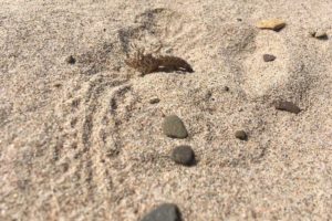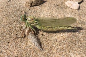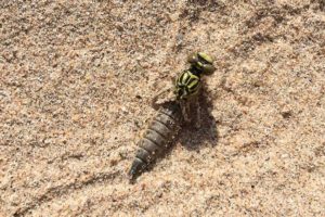 Larven van de rivierrombout kruipen de strandjes van de rivier op en ontdoen zich daar van hun huidje. Zoeken naar deze overblijfselen (zie de foto onder) is dus de makkelijkste manier om de aanwezigheid te bepalen. Nina Boemaars was getuige van het ‘uitsluipen’ van een rivierrombout in de Kil van Hurwenen. Een hele belevenis!