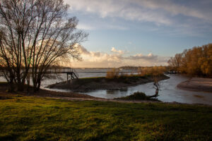 Eén van de hoogtepunten in de gids wordt een struintocht door de Heesseltsche Uiterwaarden. Op 20 november bezochten we dit gebied, met een scherp oog voor de vraag of de route volledig begaanbaar is in verband met de voortgaande dijkversterking. Tot onze opluchting viel dit alles mee. Hoewel aannemerscombinatie Mekante Diek druk in de weer is (zie de foto’s hieronder), hebben zij bij Opijnen een speciale oversteekplaats aangelegd, zodat het gebied altijd toegankelijk blijft. Goed bezig!