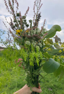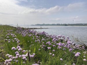 Onder wat spetters plukte ik het eerste verjaardagsboeket in de uiterwaarden bij Ophemert, een paar uren later weer een op de dijk naar Tiel.