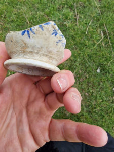 Marika Biacsics – Van der Horst stuurde ons deze foto’s van keramiek scherven die ze vond in de Loowaard. Opschrift P. Regout & Co, Maastricht. Wie weet er meer over te vertellen?